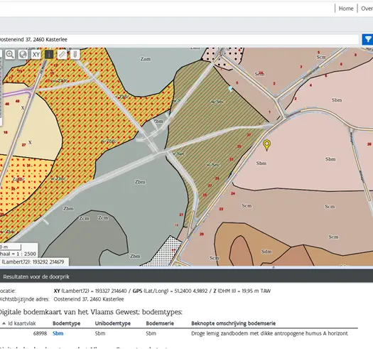 Onze eigen grond is geclassificeerd onder het bodemtype Sbm, wat wijst op een droge, lemige zandbodem met een aanzienlijke antropogene humuslaag (de A-horizont). Deze combinatie van zandstructuur en humusrijke bovenlaag zorgt voor een goede drainage én voldoende voeding — een optimale mix voor wijnbouw.